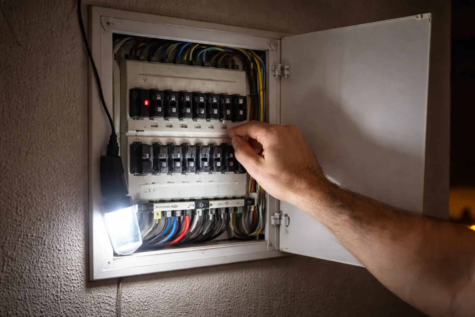 Zadzwoń i opisz stan rozdzielnicy i bezpieczników.