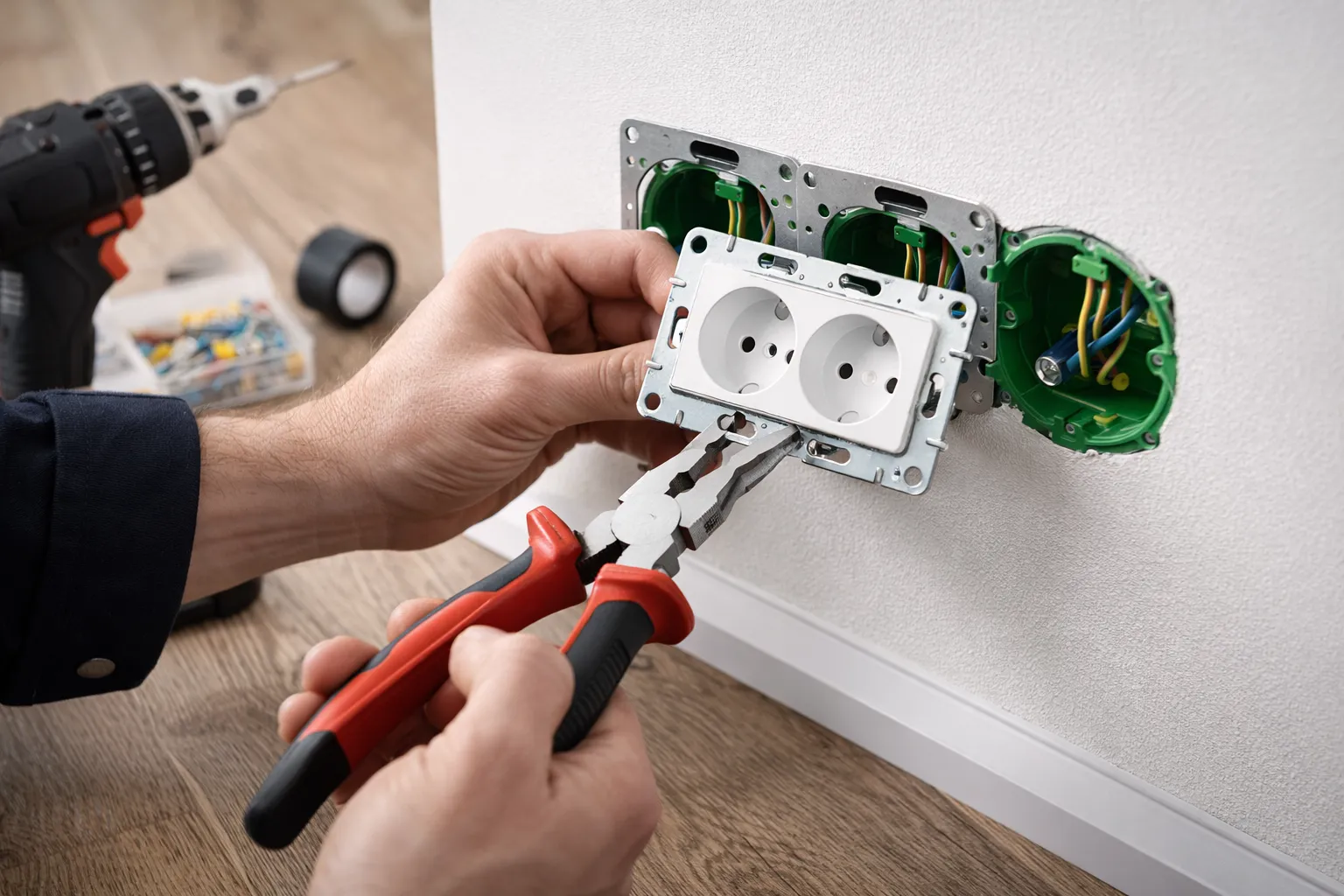 Za mało gniazdek? Dodajemy nowe punkty elektryczne w dowolnym miejscu. Prowadzenie kabla pod tynkiem lub w listwach.