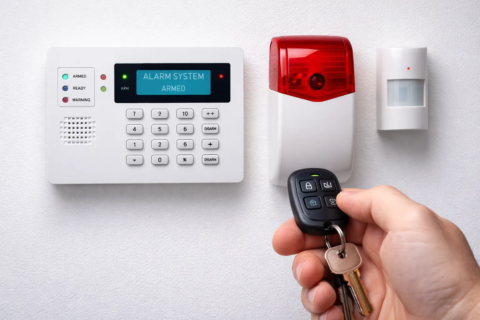 Montujemy systemy alarmowe w domach, mieszkaniach i firmach. Czujniki ruchu PIR, czujniki otwarcia, centrala alarmowa, syreny i powiadomienia SMS — pełna ochrona przed włamaniem.